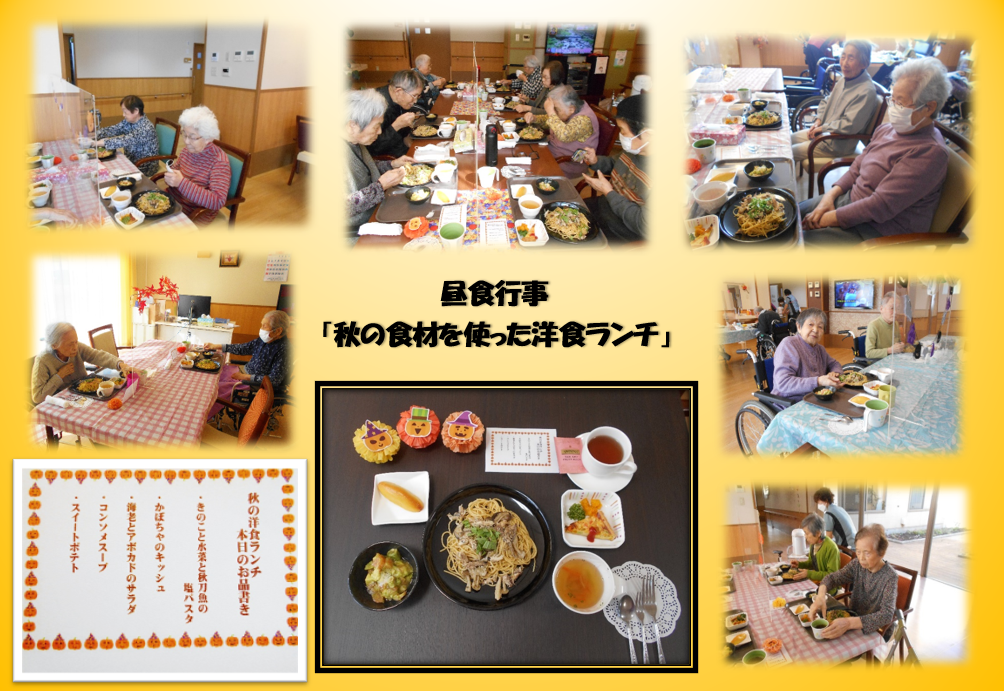 この日は秋刀魚、きのこ、カボチャ、さつまいもなど秋が旬の食材を使った豪華メニューをご入居者様に提供させていただきました。