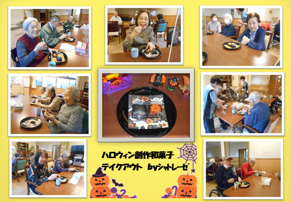 10月ということもあり、今回はハロウィンの創作和菓子をご入居者様にテイクアウトし、