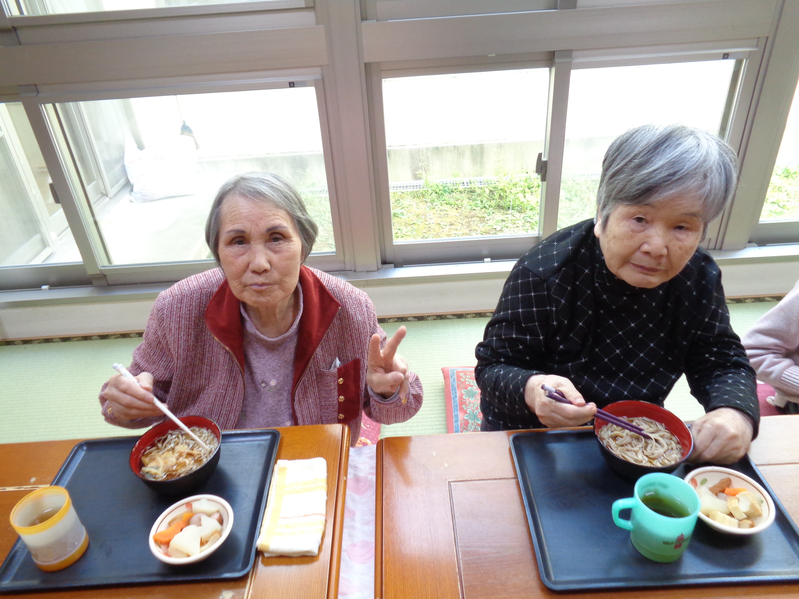 職員の家族に協力してもらい、そば打ちを企画し、目の前で粉から麺ができる光景を見て、