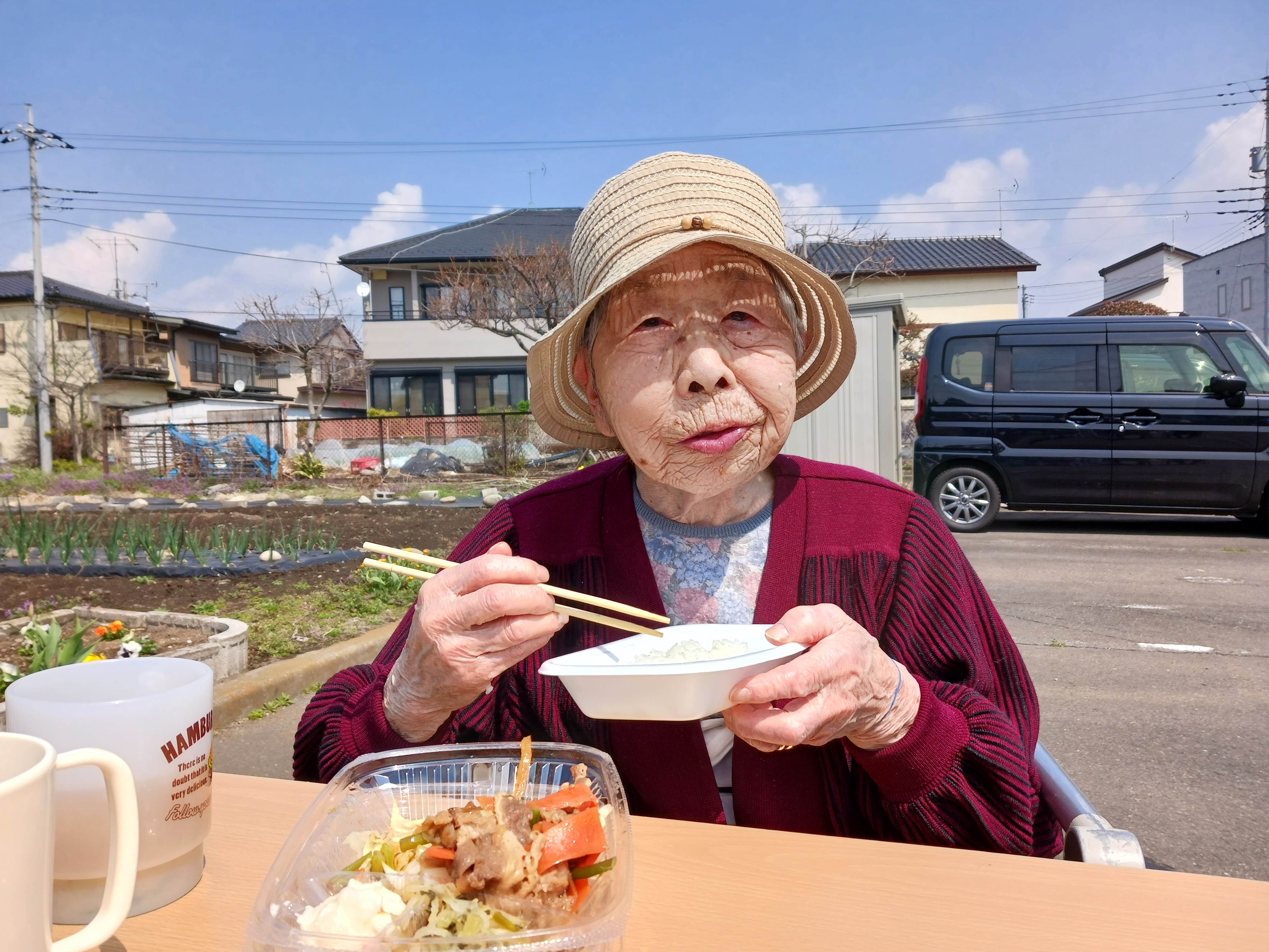 春の日差しを感じながら北側駐車場でランチ会を行いました。