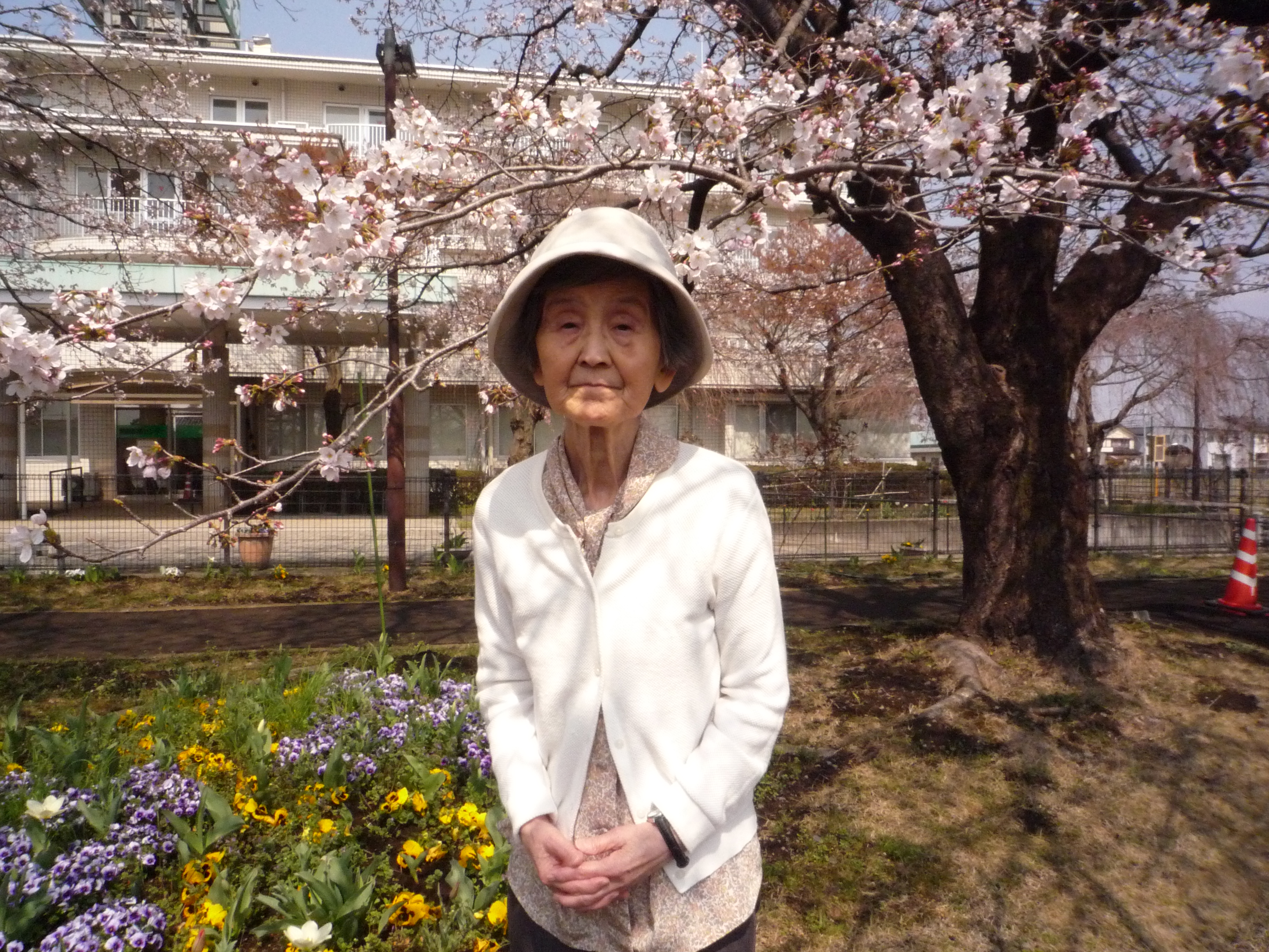桜の開花の便りが届き、黒須病院の中庭にお散歩へ。