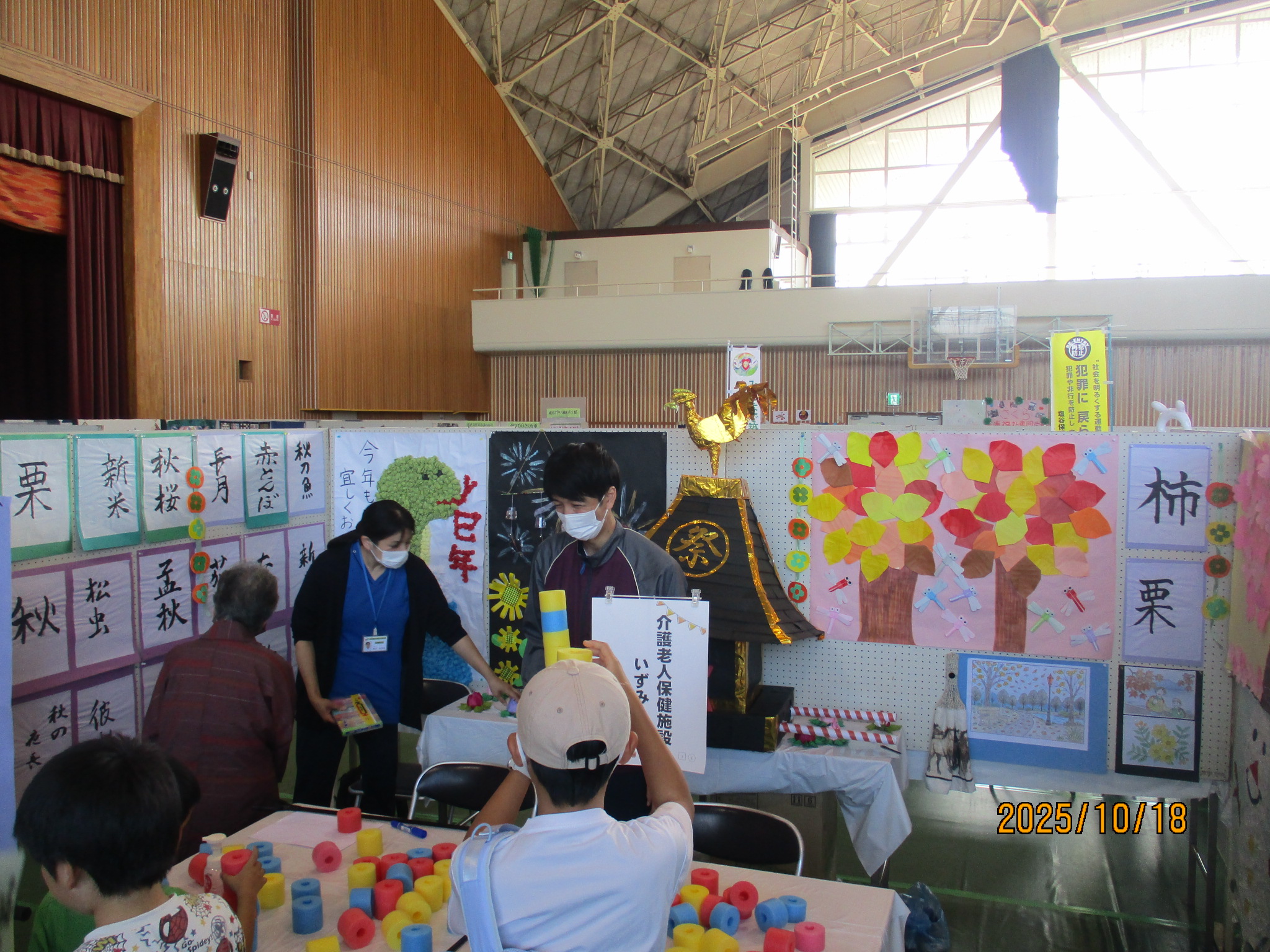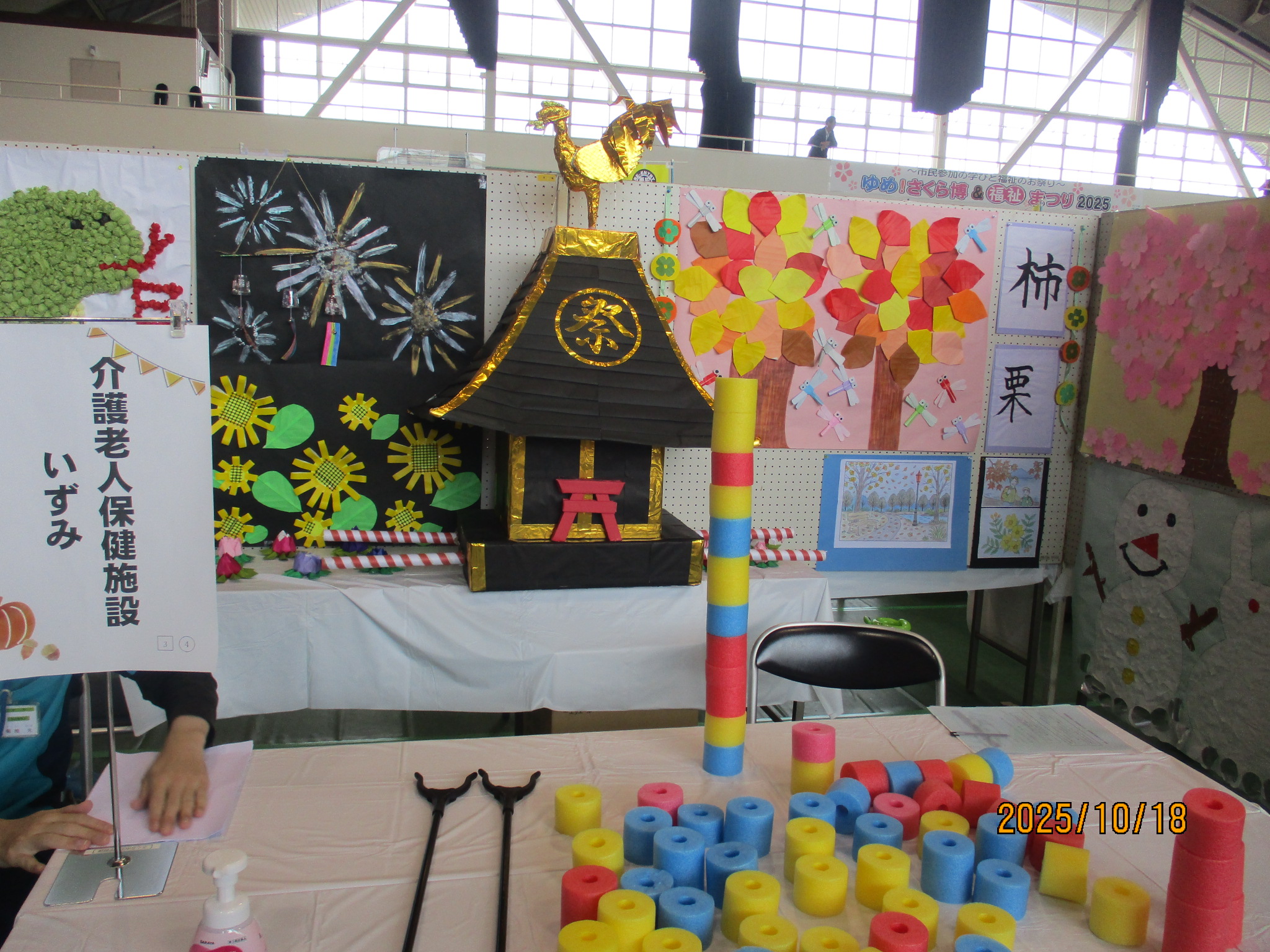 地域の皆様に少しでも「いずみ」の雰囲気を知ってもらえるようにご利用者が作成した作品を展示し、実際に行われているレクリエーションの体験コーナーを設置しました。